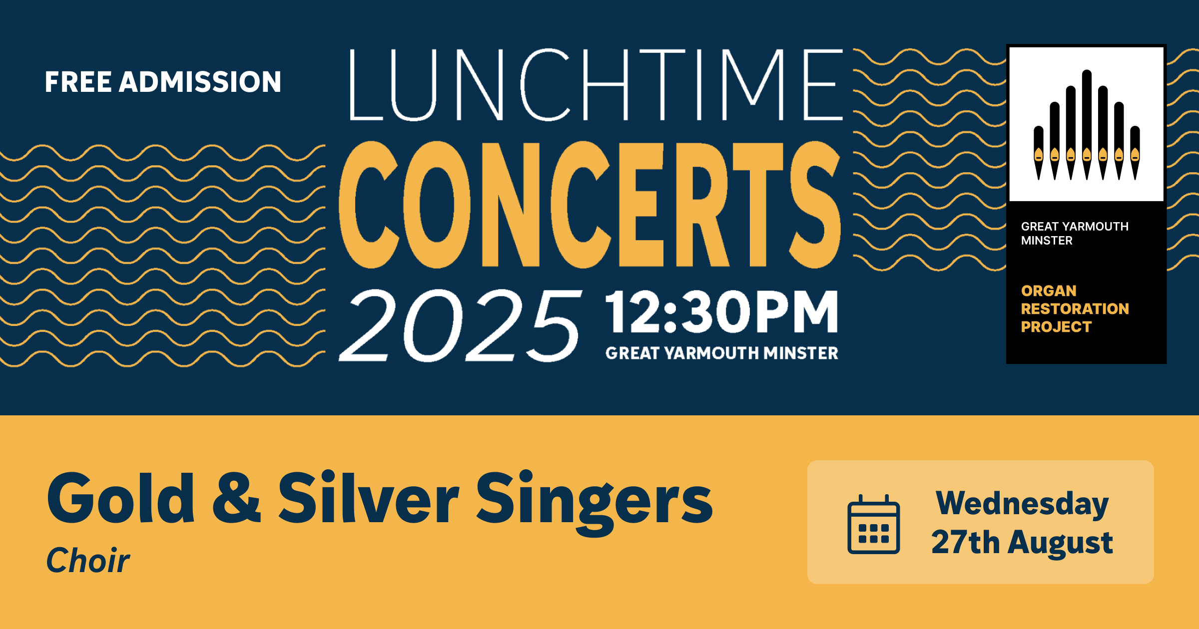 Join us as the Gold & Silver Singers bring their rich harmonies and infectious enthusiasm to our Lunchtime Concert Series. This local choir is known for their love of music and community spirit, performing an uplifting programme that blends traditional favourites with contemporary arrangements. Bring your lunch and enjoy an hour of joyful singing in the Minster’s beautiful setting. Admission is free and donations are appreciated to help keep these concerts flourishing.