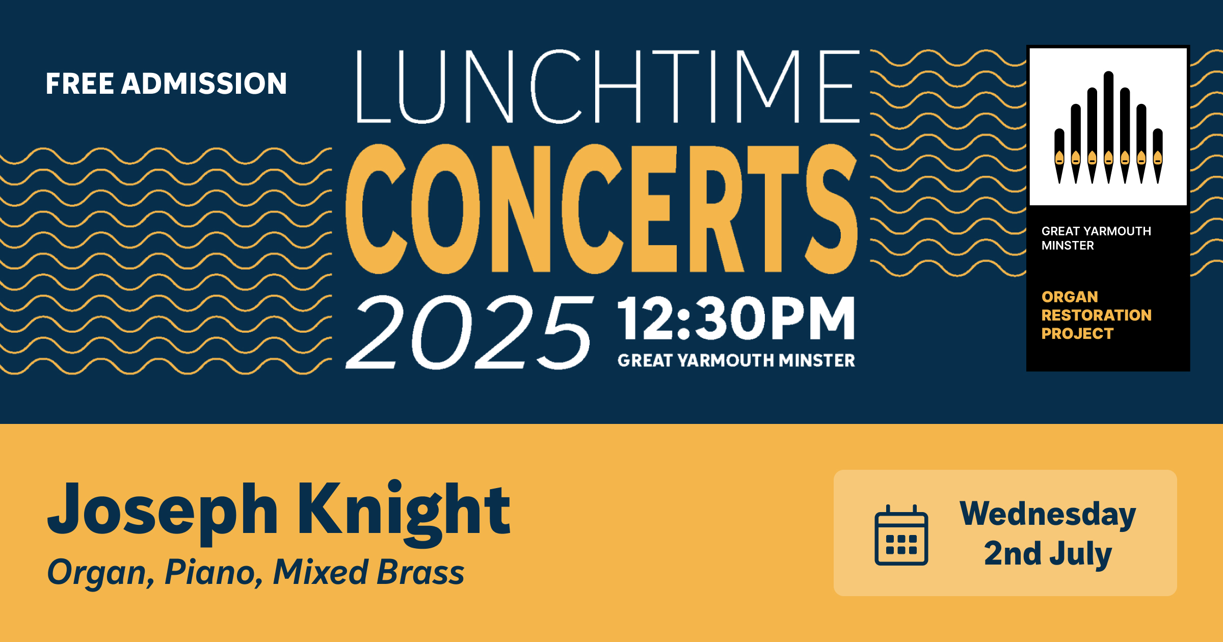 Join our Director of Music, Joseph Knight, for a captivating solo recital on the organ and piano, featuring a rich blend of classical repertoire and contemporary favourites.